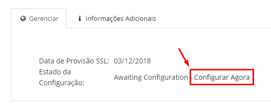 Agora crie a conta de e-mail ‘admin@dominiodossl.com.br’ e proceda em sua área do cliente clicando em “Clique para continuar“. Após concluir os passos da área do cliente será enviado um e-mail de confirmação para ‘admin@dominiodossl.com.br’, confirme o pedido de SSL e então será enviado o código CRT (o certificado ssl) para o e-mail ‘admin@dominiodossl.com.br’.