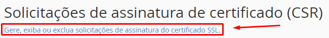 Para gerar o CSR acesse a função SSL/TLS do cPanel e clique em Gere, exiba ou exclua solicitações de assinatura do certificado SSL.